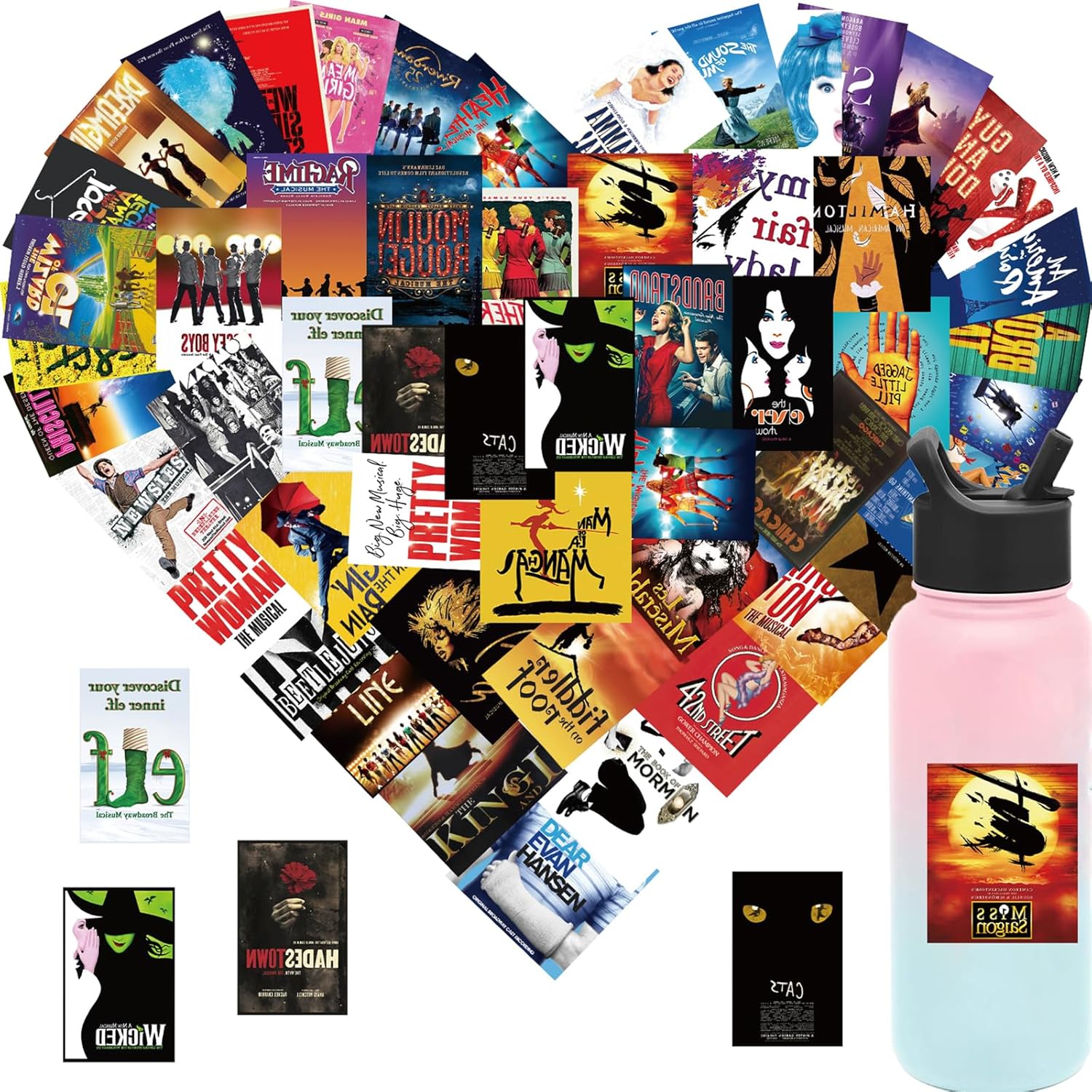 50PCs Broadway Pack Stickers,Classic Musical Play Sticker, Broadway Musical Vinyl Waterproof Decals for Laptop,Journal,Water Bottle,Wall,Theater,Dorm Deal, Poster Set Stickers for Kids,Teens,Girls