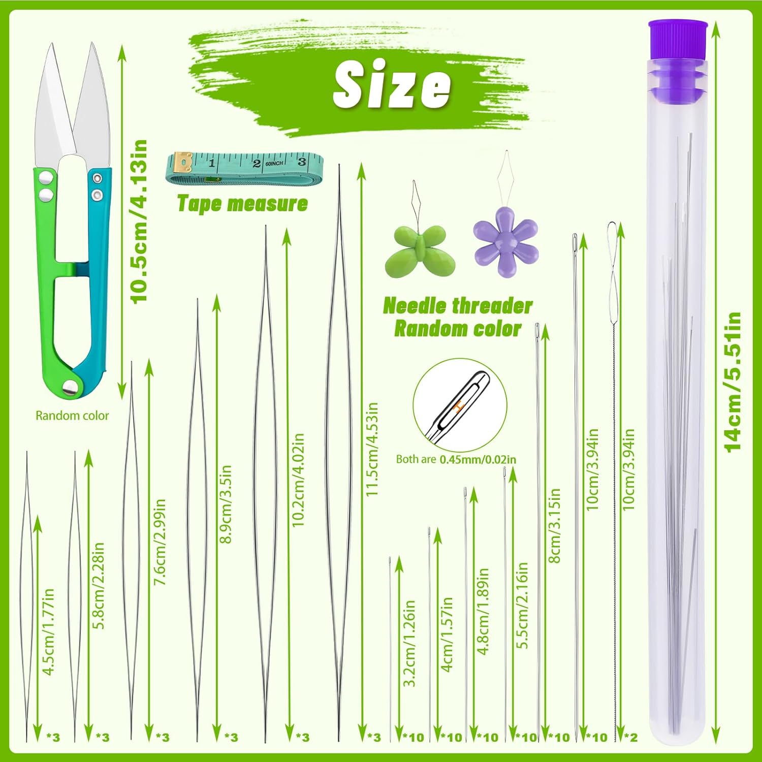 Size Bead Needle: 5 types of needles:10 x 0.45 x 32 mm;10 x 0.45 x 40 mm; 10 x 0.45 x 48 mm;10 x 0.45 x 55 mm;10 x 0.45 x 80 mm;10 x 0.45 x 100 mm;3 x 4.5 cm;3 x 5.8 cm;3 x 7,6 cm;3 x 8,9 cm;3 x 10.2 cm;3 x 11.5 cm,Easy to carry or distinguish