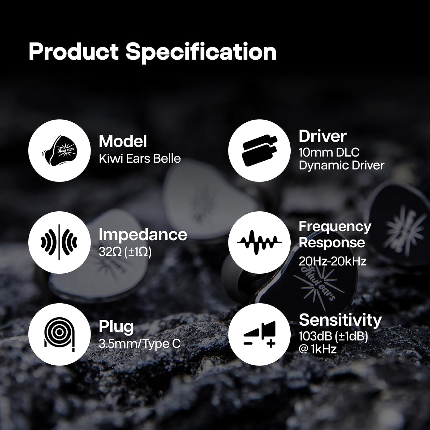 Accurate Technicalities for Pro Use: The Belle uses the latest generation of Kiwi Ear’s custom Diamond-Like Carbon (DLC) diaphragm. DLC diagrams have been tried and true for over a decade in the IEM industry, and the latest diaphragm manufacturing innovations enhances membrane rigidity and tension. The Belle’s DLC diaphragm feels extremely snappy and responsive, providing incredible accuracy needed for professional music production and gaming. The Belle boasts of less than 0.1% THD at 1kHz and a perfectly linear phase curvature for a cohesive and Hi-Fi sound
