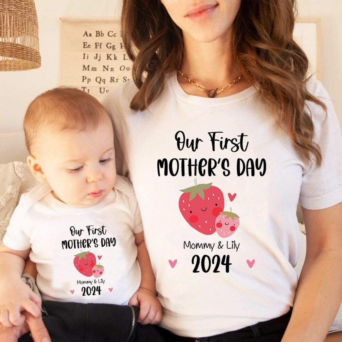 The personalized mom and baby girl names Our First Mother’s Day 2024 is a perfect gift for you and your baby to wear on Mother’s Day 2024